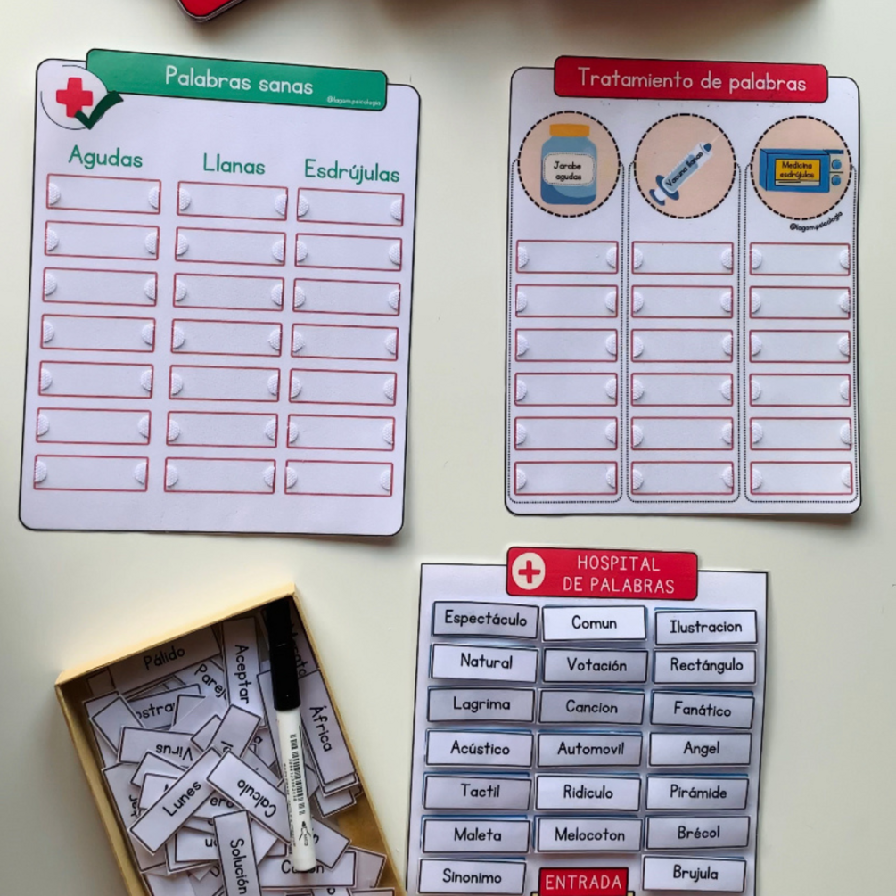 ¡Nuestras palabras no paran de enfermar! Tenemos un hospital llenito de palabras y no sabemos si están sanas o un poco pachuchas... ¿Te atreves a clasificarlas? ¡Ojo! Que si están enfermas, tendrás que ponerle el tratamiento urgentemente.